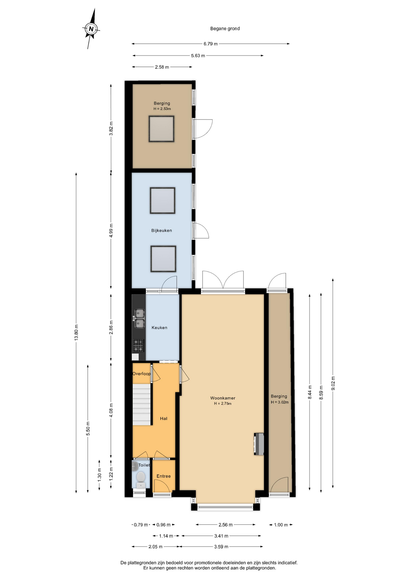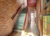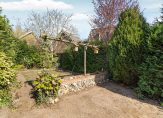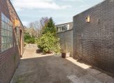 entree / hang met toilet / vanuit de gang heb je toegang tot de keuken met bijkeuken voorzien van daglicht door lichtkoepels in het platte dak / de grote, lichte woonkamer met stenen schouw en erker en openslaande deuren naar de diepe tuin met achterom / achter de bijkeuken is nog een extra berging annex hobbyruimte / de achterom is overdekt en ook geschikt om fietsen droog te stallen.
