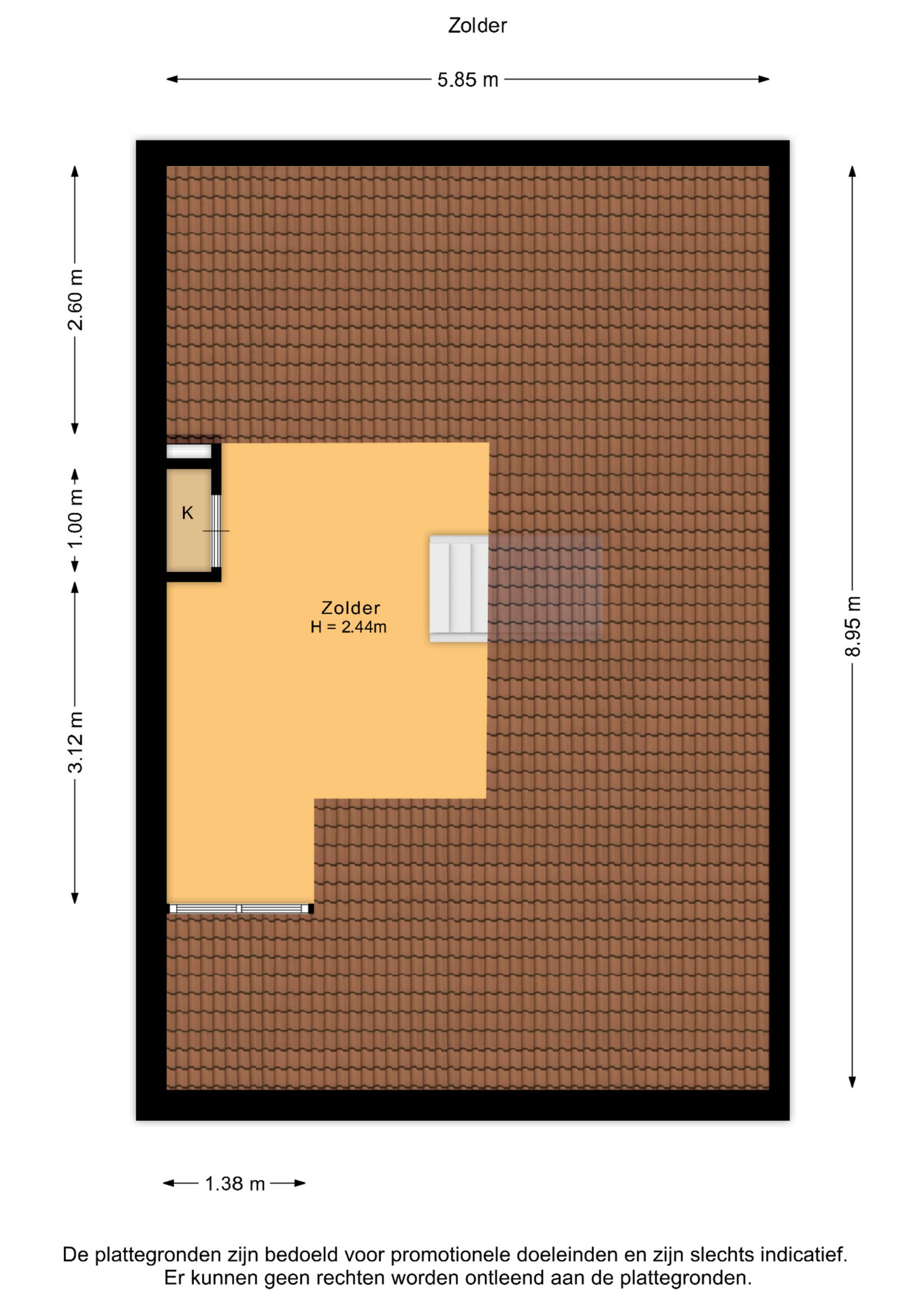 Met een vaste trap kun je naar de tweede verdieping met bergruimte en daglicht middels een dakkapel.(kamer mogelijk)