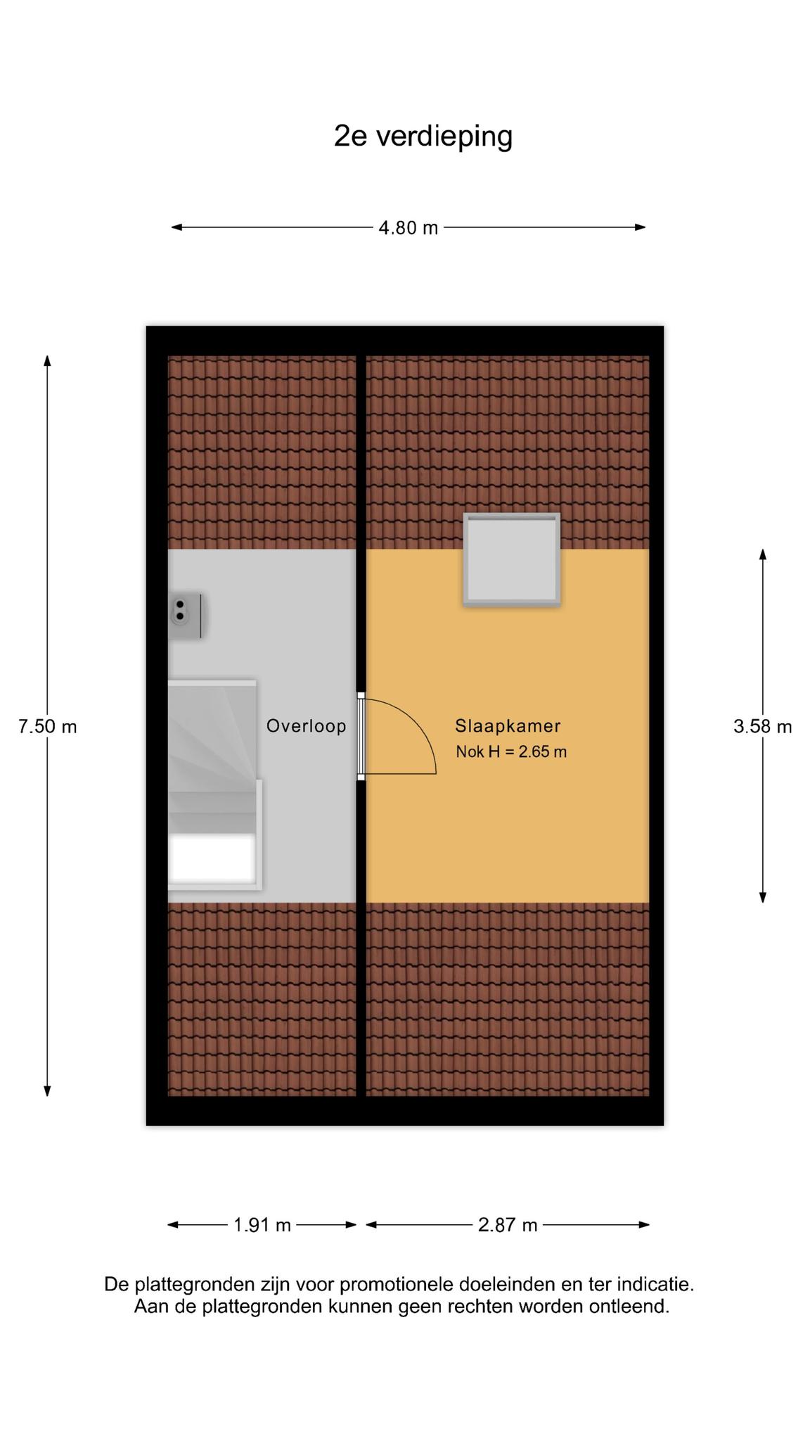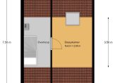 Ruime zolder welke is opgedeeld in twee ruimten. Op de overloop/voorzolder zijn de wasmachine aansluiting en C.V.-ketel. De slaapkamer is erg ruim en heeft een groot dakvenster. Rondom de twee ruimten is veel opbergruimte.