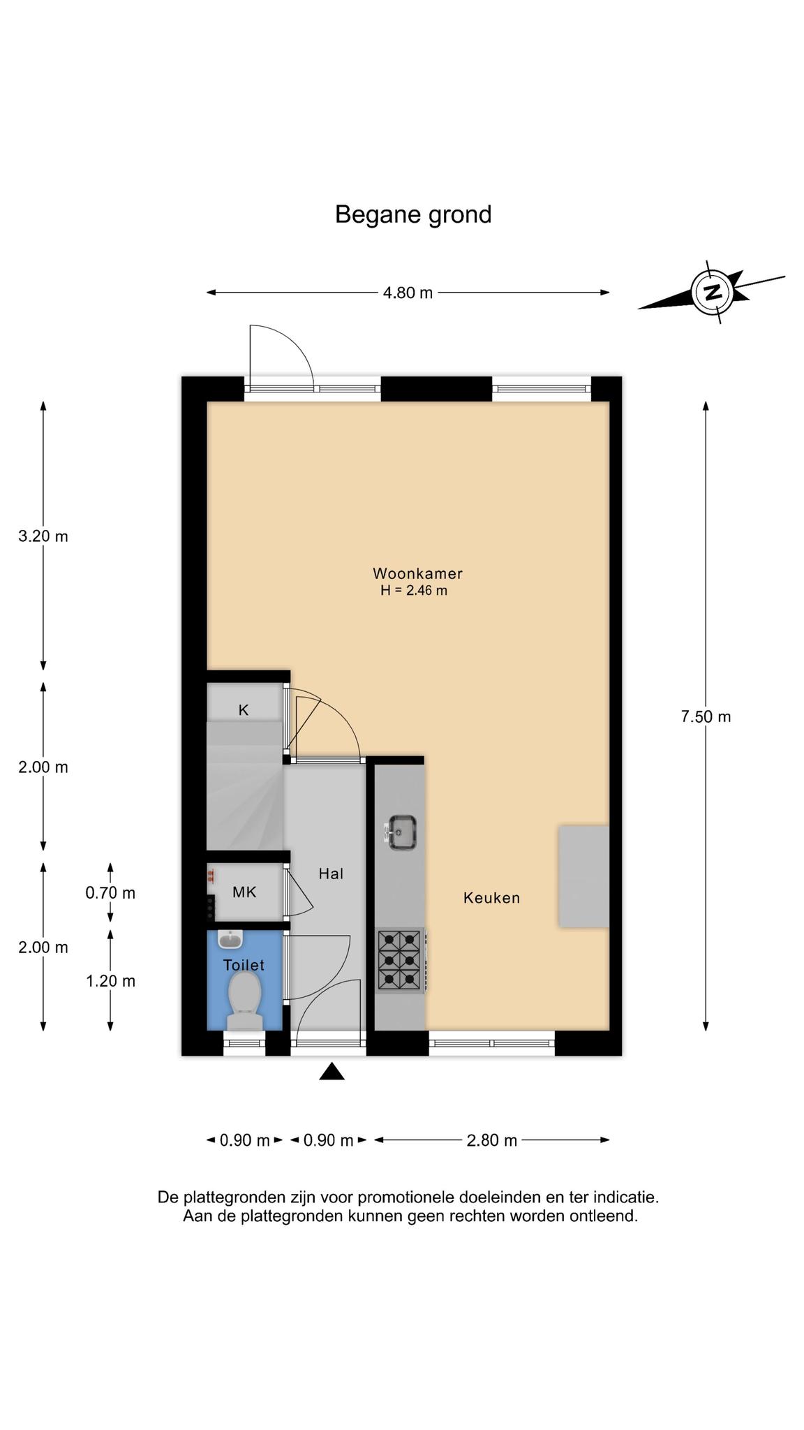 Entree met meterkast en toilet. De woonkamer heeft een open keuken met inbouwapparatuur. De woonkamer is opgedeeld in een L vorm waardoor het erg ruim oogt en een leuke indeling kent met het koken en wonen. Via de woonkamer is de tuin met achterom en berging te bereiken.
