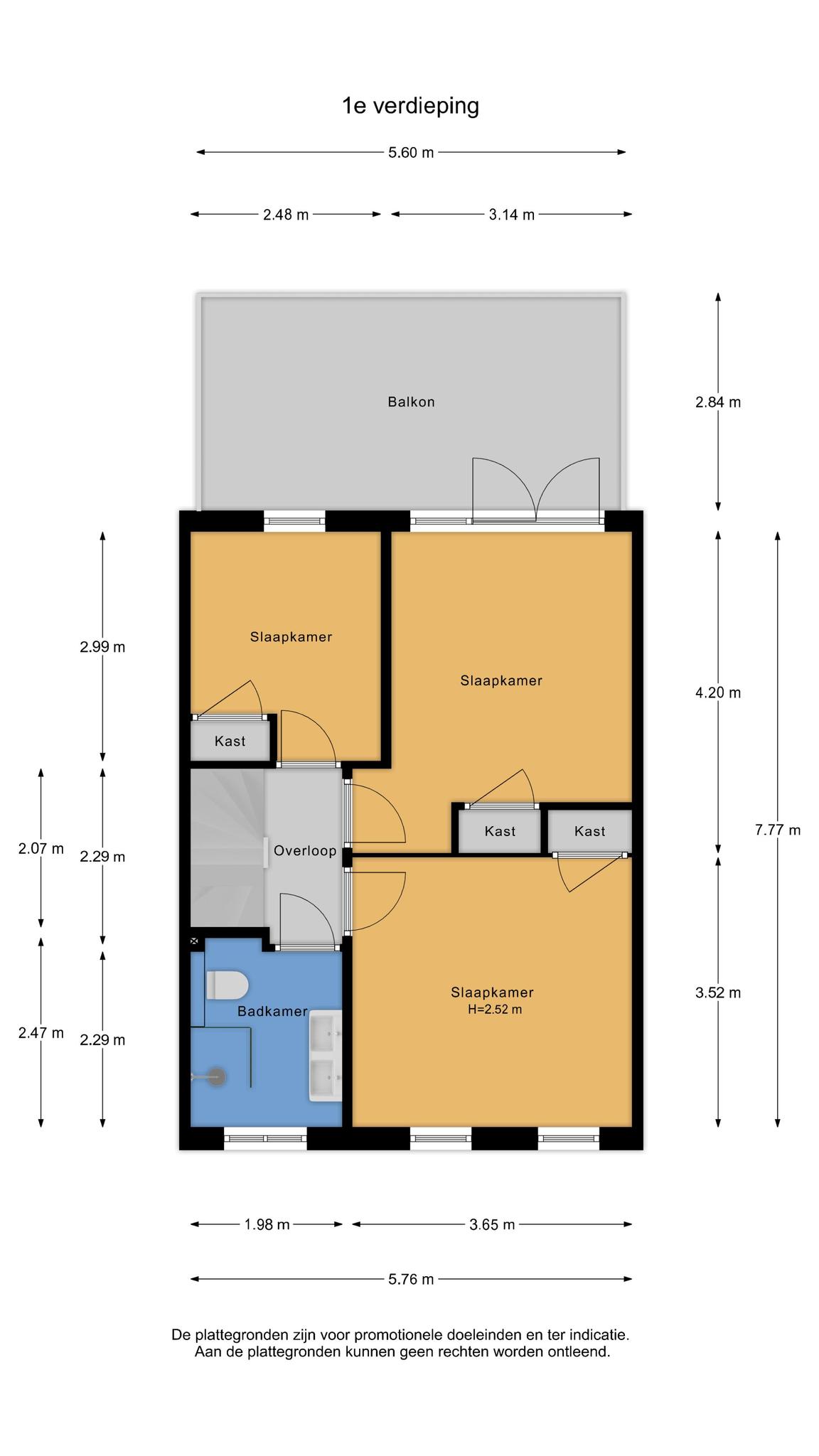 De overloop biedt toegang tot de badkamer en de slaapkamers. Er zijn drie slaapkamers, waarvan er twee aan de achterzijde van de woning liggen. Alle slaapkamers hebben een vaste kast De slaapkamers zijn opvallend licht. De grote slaapkamer aan de achterzijde heeft openslaande deuren naar het balkon met zicht op de achtertuin.
