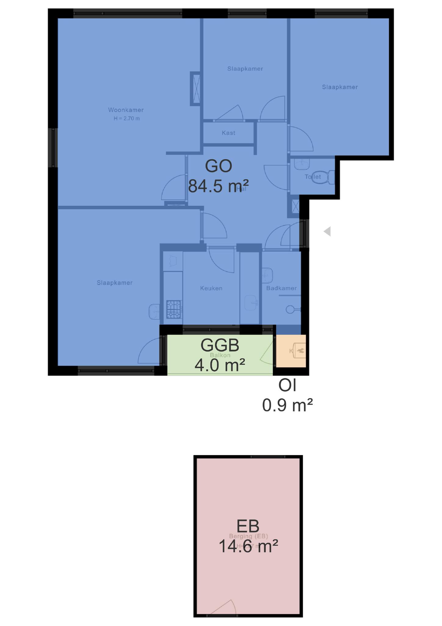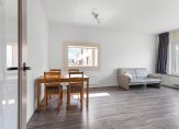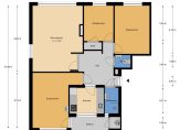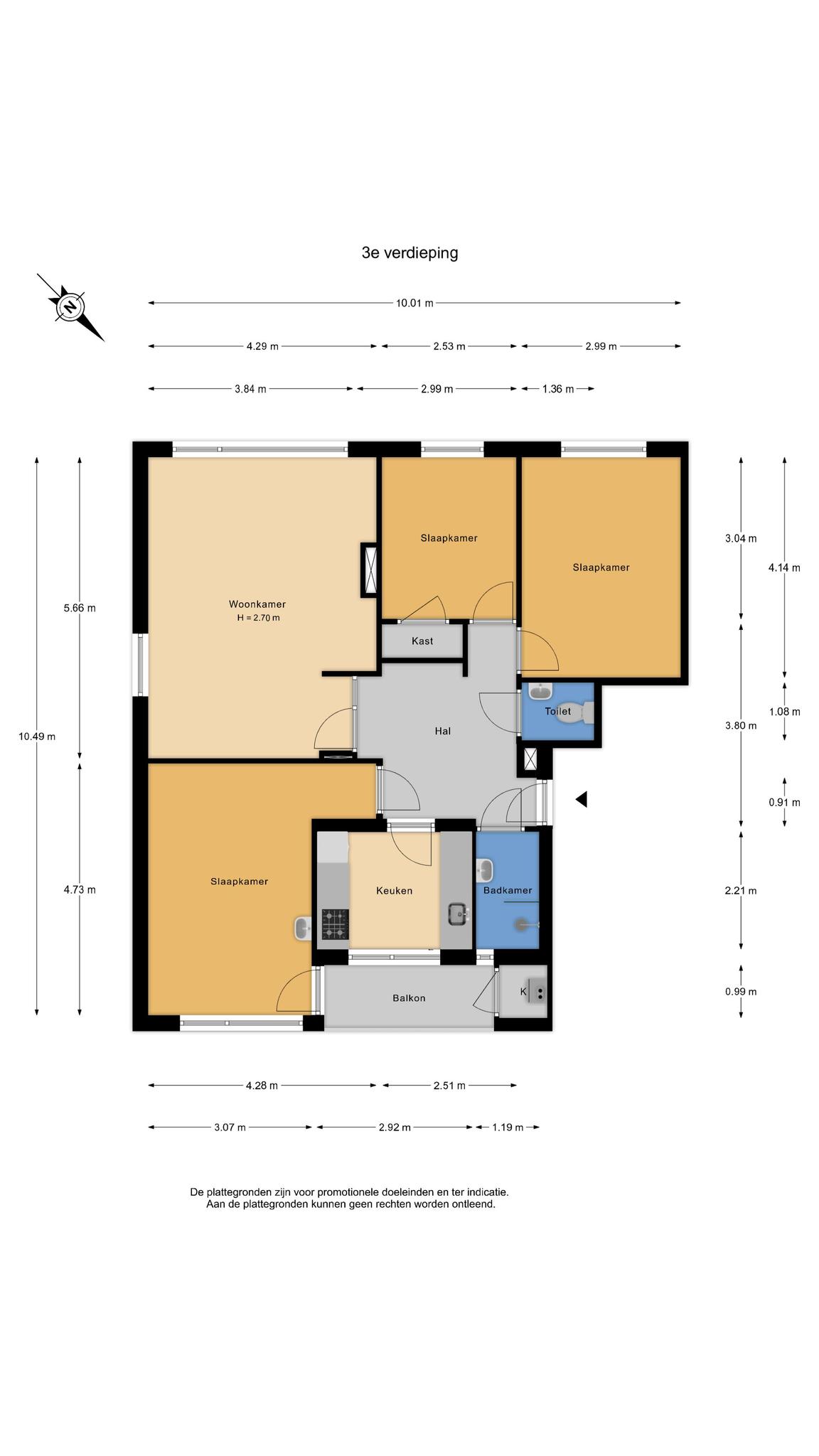 Entree naar het appartement met een ruime hal en een toilet met fonteintje. Aan de achterzijde van het appartement zitten twee slaapkamers waarvan รฉรฉn met een vaste kast. De derde slaapkamer met een wastafel bevindt zich aan de voorzijde van het appartement. De badkamer met douche en wastafel, de ruime lichte woonkamer en de dichte keuken met witgoedaansluiting zijn tevens bereikbaar vanuit de ruime hal. Het balkon, aan de voorzijde gelegen op het oosten, heeft een schuifpui naar de keuken, toegang tot de slaapkamer middels een deur en is voorzien van een kast met cv-ketel.