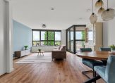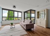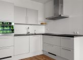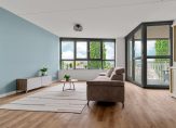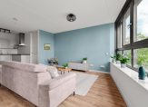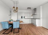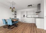Entree / lift / overloop / entree appartement / ruime hal met meterkast / toilet / bijkeuken met WTW en was- en droog aansluitingen / 2 slaapkamers / badkamer met inloopdouche, wastafel zonder ombouw en 2e toilet en elektrische design radiator voor droge handdoeken in de zomer / lekker lichte vierkante woonkamer met open keuken. Keuken is voorzien van inductiekookplaat, afzuigkap, vaatwasser, combi-oven en koel-/vrieskast