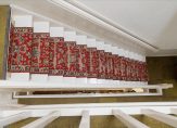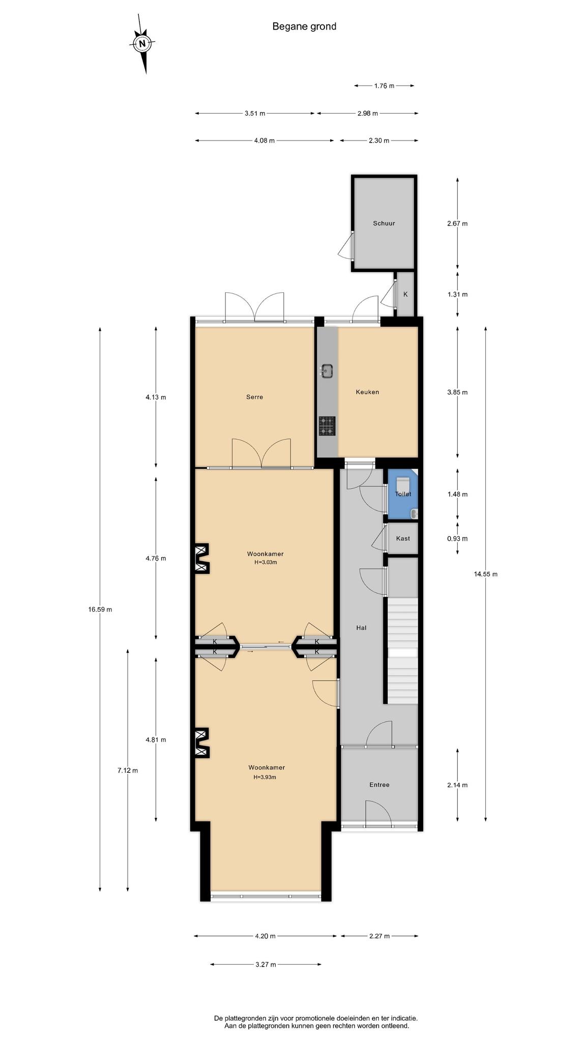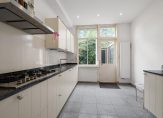 Begane grond: entree / vestibule / hal met toilet, bergkast en deur naar kelder/ zeer ruime kamer en suite met erker en serre, totaal 16,65m lang voorzien van twee marmeren schouwen, open haard en glas in lood deuren / keuken