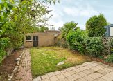 Aan de achterzijde bevindt zich de open keuken, voorzien van een keukenblok met afzuigkap, koelkast in combinatie met vrieskast en voldoende werk- en opbergruimte. Een handige bergkast bevindt zich direct naast de keuken. In de achtertuin bevindt zich een vrijstaande stenen garage, direct bereikbaar vanuit de tuin. Deze biedt extra ruimte voor het stallen van fietsen, een auto of kan dienen als hobby- of opslagruimte.