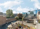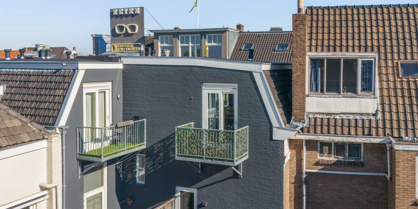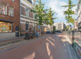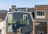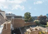 De studio heeft een fijne hoogte en aan de zijkant een dakkapelletje met een raam voor extra licht en ventilatie maar waar je ook zo de van Welderenstraat in kunt kijken.