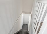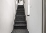 Begane grond: gezamenlijke entree en trapopgang naar de overloop met daar de meterkast en de trap naar de studio.