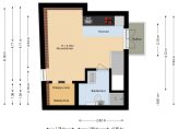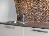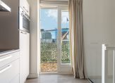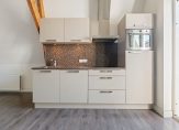 De studio heeft in de woonkamer een nette open keuken met alle inbouwapparatuur zoals een inductiekookplaat, combimagnetron, vaatwasser, koelkast met vriesvak en een afzuigkap.