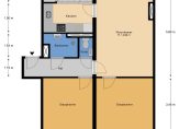 Entree naar het appartement met een ruime hal, badkamer met douche en wastafel, apart toilet met fonteintje, slaapkamer één en toegang tot de woonkamer. De woonkamer heeft vrij uitzicht en ligt aan de voorzijde van het appartement met een deur naar slaapkamer twee aan de achterzijde en naar de keuken aan de voorzijde. De dichte keuken heeft enkele inbouwapparatuur en toegang tot het balkon. De cv-ketel zit in een kastruimte toegankelijk vanaf het balkon.