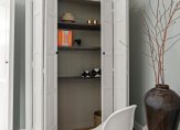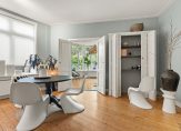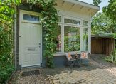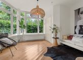 Via de poort aan de voorzijde loop je door de voortuin naar de entree. In de hal vind je de meterkast en heb je toegang tot de sfeervolle, lichte woonkamer en suite. Deze is ingedeeld in een woon- en eetgedeelte, voorzien van meerdere inbouwkasten en een royale erker. Dankzij de hoge raampartijen valt er volop daglicht binnen. De tuin aan de voorzijde wordt omringd door een hoge heg, waardoor je veel privacy hebt.