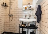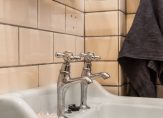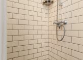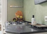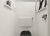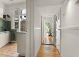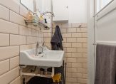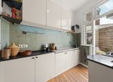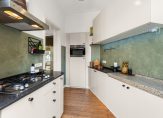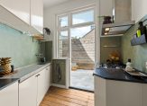 Vanuit de eetkamer bereik je de gang. Hier bevindt zich de dichte keuken met een openslaande deur naar de achtertuin. De keuken is uitgerust met een granito aanrechtblad, gaskookstel, oven, afzuigkap, vaatwasser en koelkast. Aan de andere zijde van de gang vind je de badkamer met inloopdouche en wastafel, en daarnaast een apart toilet.