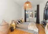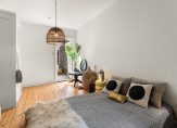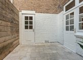 Verderop in de gang ligt de ruime slaapkamer (ca. 15 mยฒ), die eveneens toegang biedt tot de achtertuin.