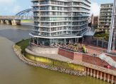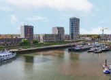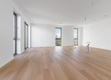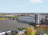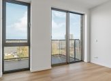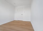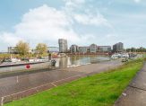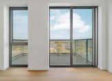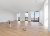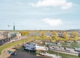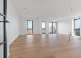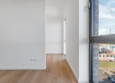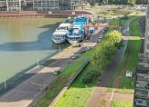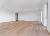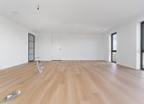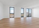 De lichte woonkamer vormt het hart van het appartement. Hier bevindt zich een aansluiting voor een kookeiland, zodat je de keuken geheel naar wens kunt realiseren. Vanuit de woonkamer kijk je prachtig uit over de Waal.