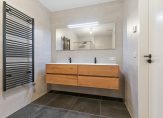 Het appartement beschikt over twee slaapkamers, een apart toilet en een luxe afgewerkte badkamer met hoogwaardige materialen en moderne uitstraling.