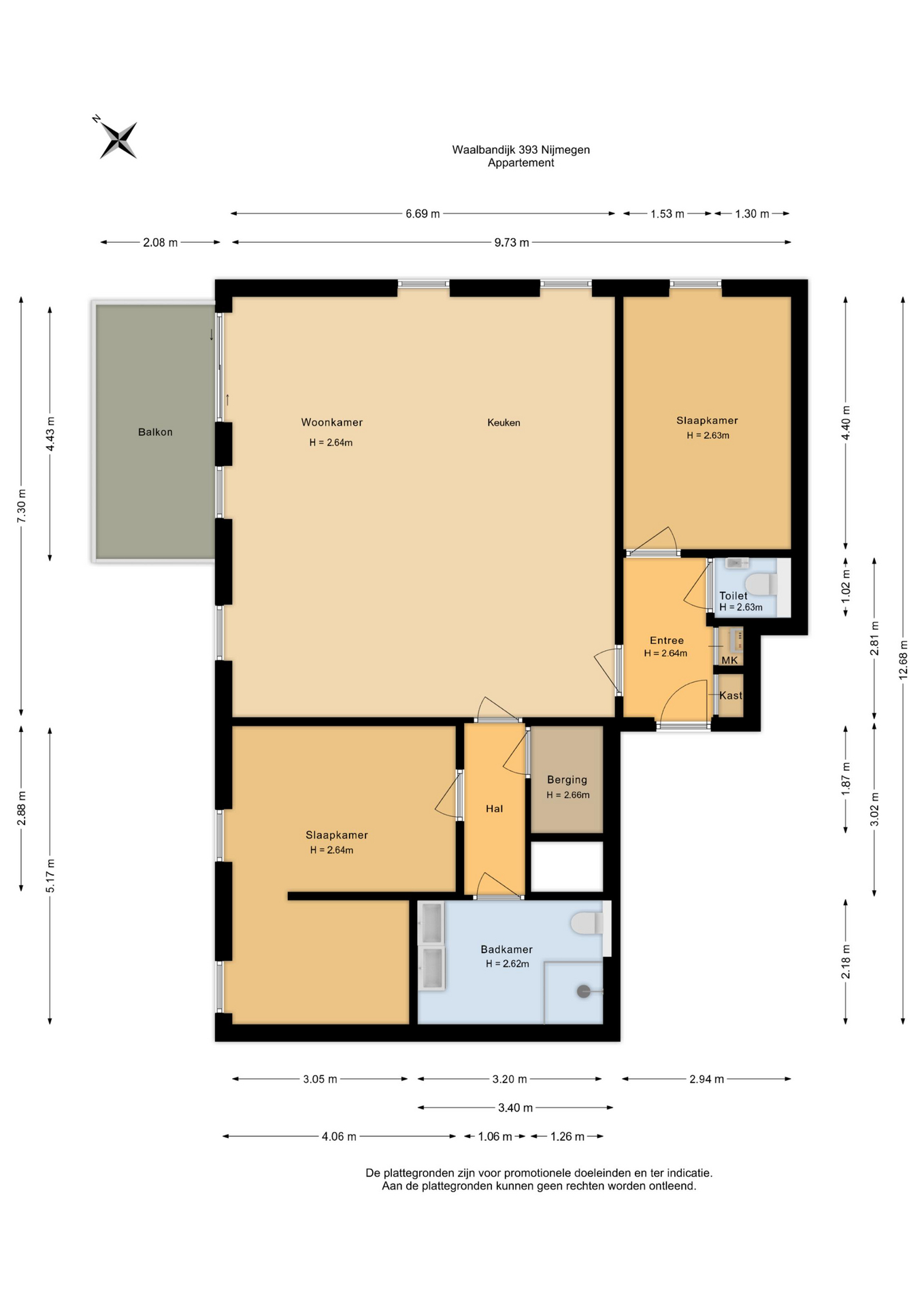 Entree met hal, meterkast en modern toilet. Vanuit de hal bereik je de slaapkamer en de ruime woonkamer van circa 50 mยฒ met toegang tot het balkon op het noordwesten (ca. 9 mยฒ). Via de woonkamer loop je door de gang naar de berging en de slaapkamer met inloopkast. De luxe badkamer is uitgerust met een dubbele wastafel, toilet en inloopdouche.