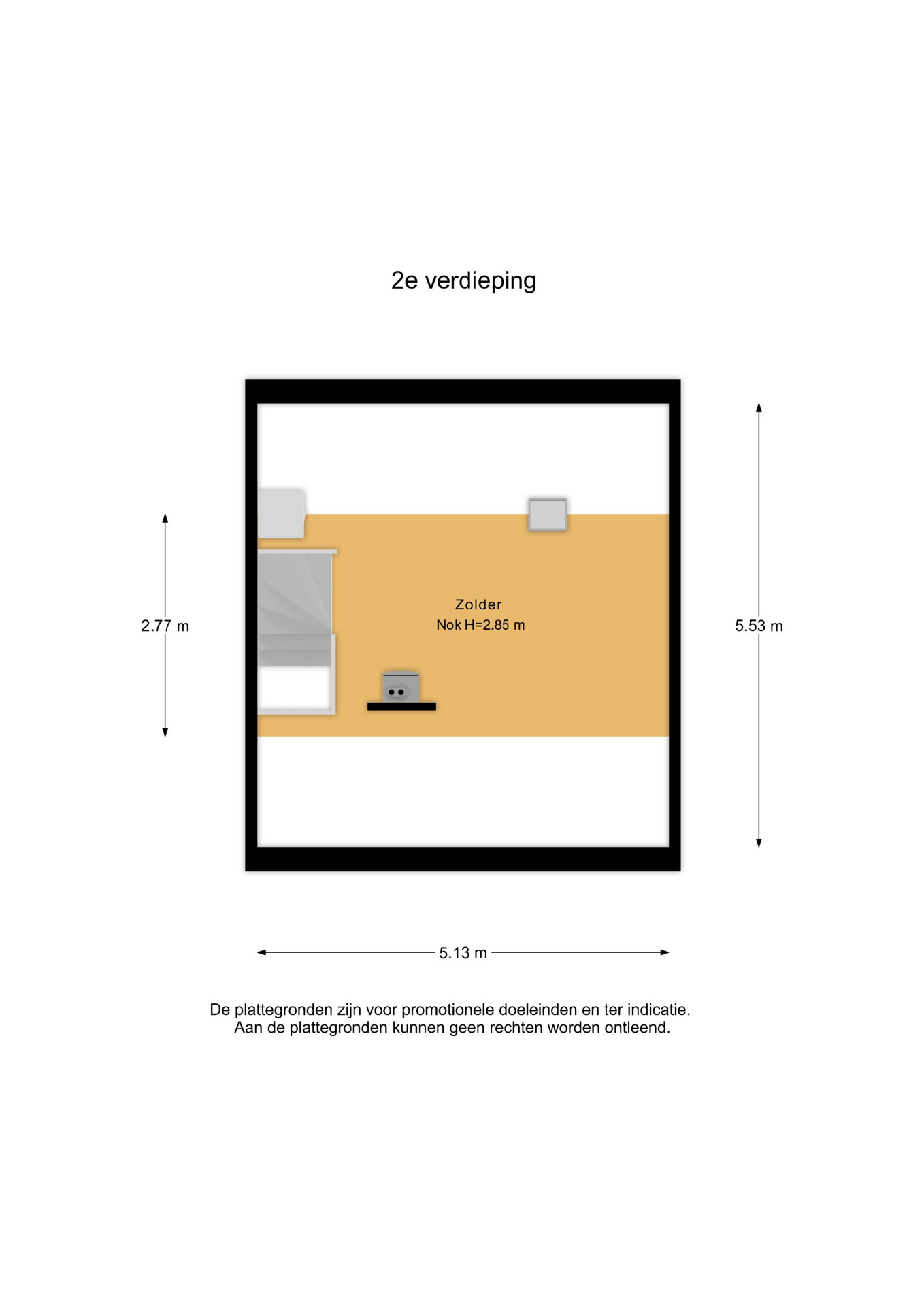 De bovenste verdieping is middels een vaste trap te bereiken. Hier is de cv-ketel en de wasmachineaansluiting te vinden. De ruimte kan worden gebruikt als vierde slaapkamer of als berging.