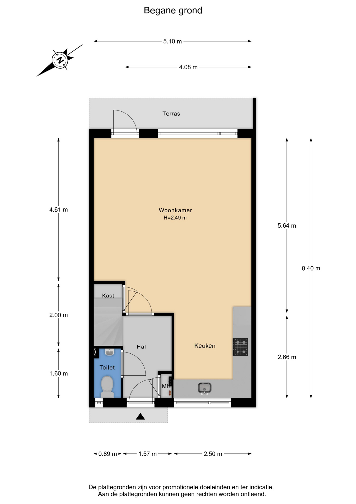 Entree met garderobe, meterkast, apart toilet, trapopgang naar de eerste verdieping en toegang tot de woonkamer. De lichte woonkamer met veel daglichttoetreding heeft een open L-keuken met inbouwapparatuur en provisieruimte. De achtertuin heeft een vrijstaande houten berging met achterom.