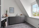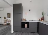 De keuken is net zoals de rest in het appartement gloednieuw en nog niet gebruikt. De keuken is compleet uitgevoerd en beschikt over een oven, inductiekookplaat met ingebouwde afzuiging, vaatwasser en koelkast met vriesvak.