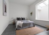 De slaapkamer heeft voldoende ruimte voor een bed en een kast. Door het grote raam en het dakvenster in de hal komt er hier ook veel licht naar binnen.