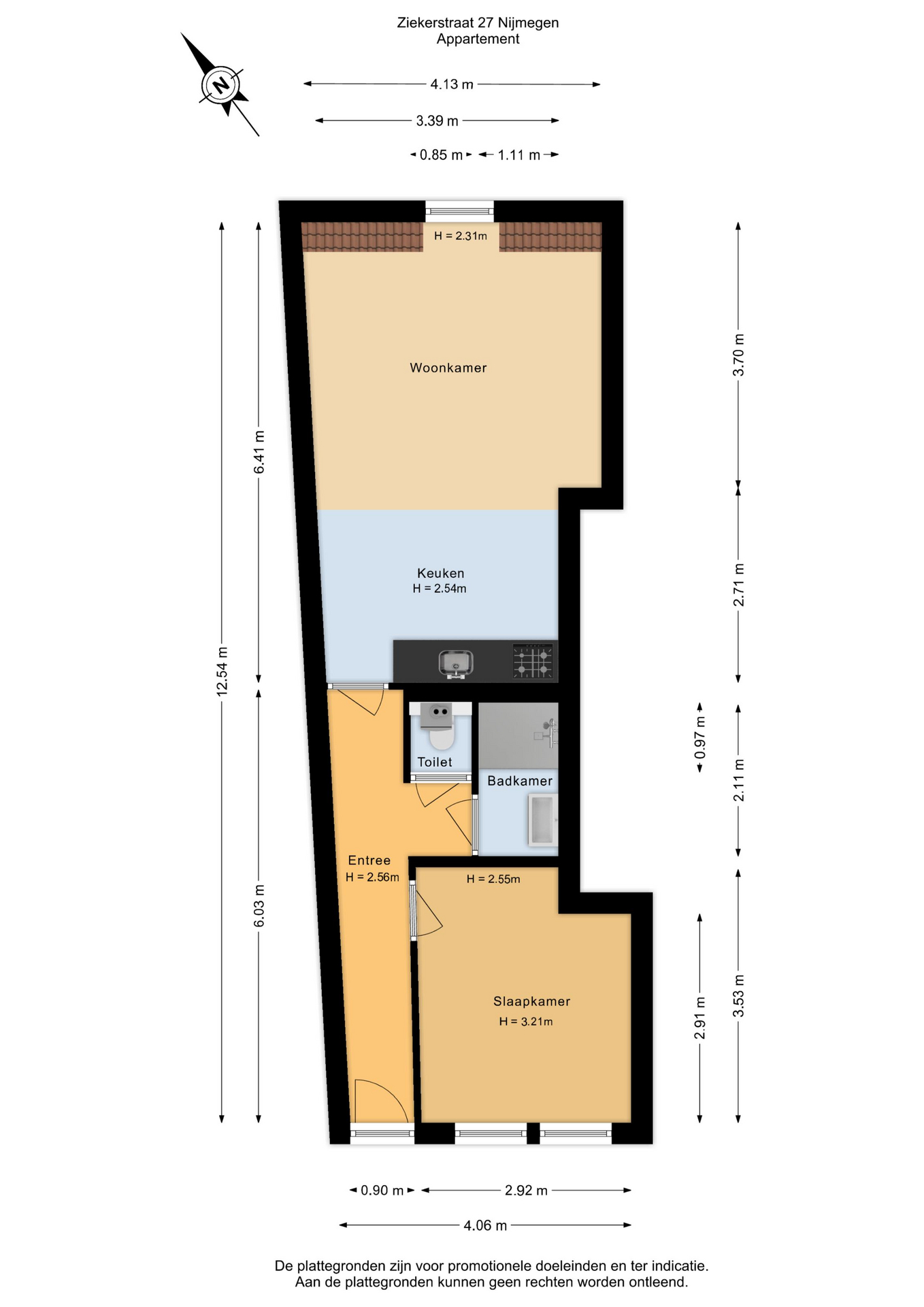 Het appartement heeft een centrale entree met trapopgang. Vanuit de trap bereik je de meterkast en de toegang tot de gezamenlijke buitenruimte. Via de galerij loop je vervolgens richting de voordeur van het appartement. Je komt dan binnen in de gang, met toegang tot de ruime slaapkamer, badkamer, toilet en de woonkamer met open keuken.
