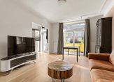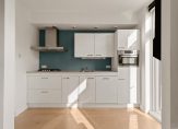 Het appartement ligt op de eerste verdieping. Op de overloop is er ook een opslagruimte te vinden voor o.a. je stofzuiger. Via de voordeur kom je in de woonkamer. De woonkamer is erg licht door de grote pui aan de achterzijde en de verbinding met de open keuken. De keuken beschikt over een wasmachine, vaatwasser, gasplaat, afzuigkap, koelkast en combimagnetron. Via de keuken is het toilet te bereiken. Verder ligt het balkon op de zon en is deze op twee manieren te bereiken. Via de keuken maar ook via de schuifpui vanuit de woonkamer.