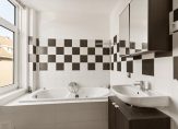 De slaapkamer ligt aan de voorzijde en heeft een goed formaat. Er kan gemakkelijk een tweepersoonsbed en een kast staan. Via de slaapkamer kom je in de badkamer. De badkamer is ruim en heeft een raam wat veel licht geeft maar ook goed is voor de ventilatie. De badkamer kent verder een wastafel, (bubbel) ligbad en douche.