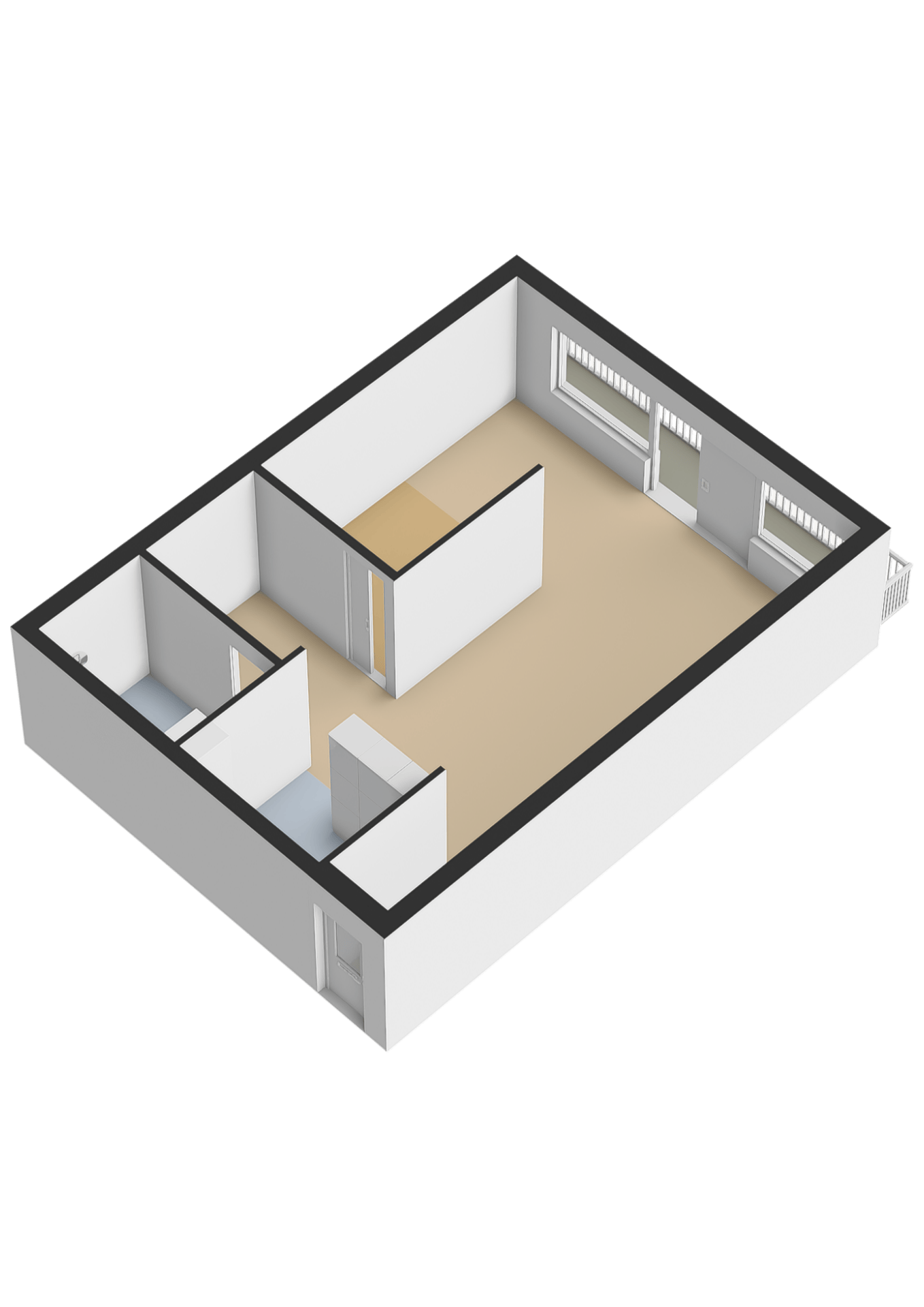 Tussen de badkamer en slaapkamer is er een extra ruimte. Dit is in te richten als werkplek of als kledingkamer. Maar je kan er ook een logeerruimte of opbergruimte van maken. De slaapkamer ligt aan de voorkant en de badkamer aan de achterkant. In de badkamer bevinden zich ook de wasmachine aansluitingen.